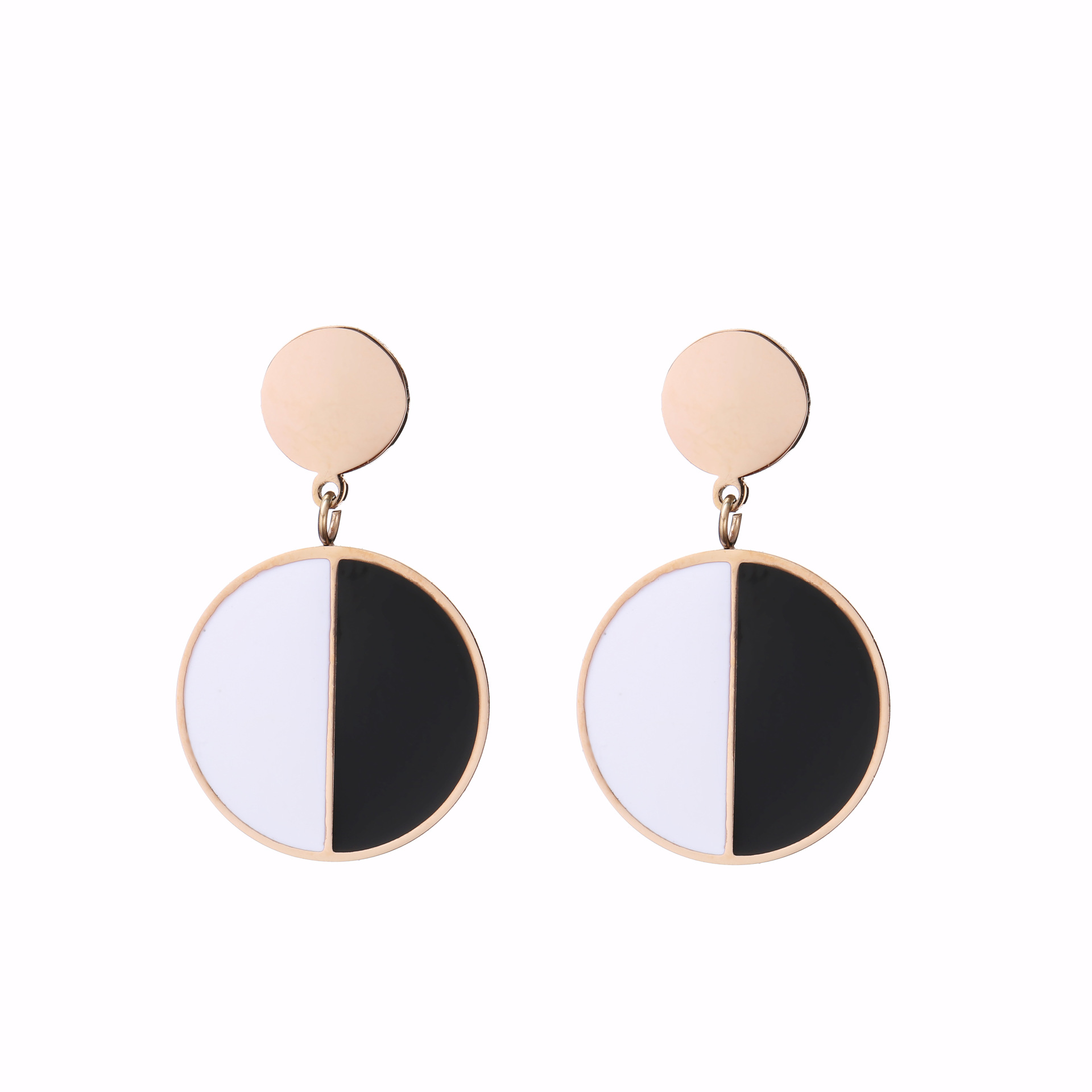【名称】NATURALLY JOJO轻奢淑女系欧美时尚圆形黑白亚克力耳环