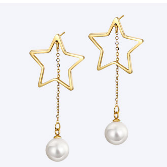 NATURALLY JOJO轻奢淑女系钛钢五角星圆形贝珠耳环