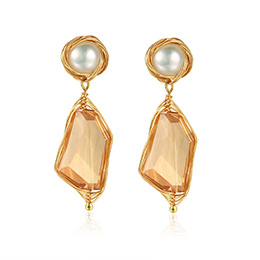 NATURALLY JOJO S925银针时尚气质收工缠绕香槟色水晶个性不对称耳钉