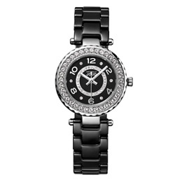 女款黑色镶钻陶瓷表带腕表