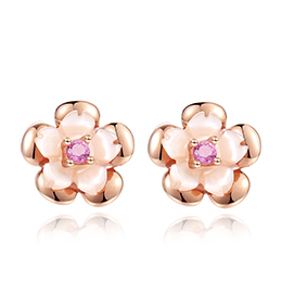 JOE&SHANN S925纯银人气天然粉贝壳樱花耳钉