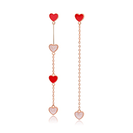 JOE&SHANN S925纯银心心相印 甜美爱心形不对称长款流苏耳环